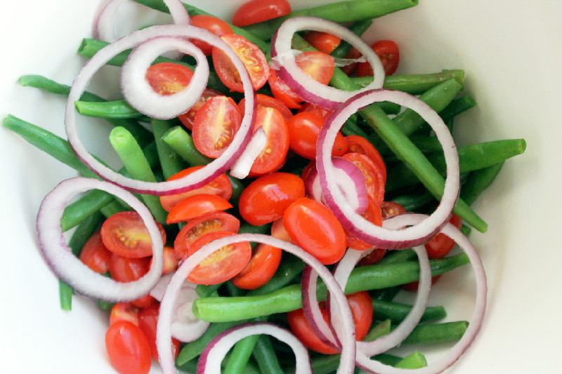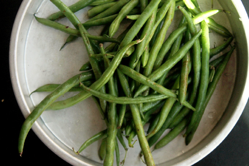 After green beans cool, drain and dry well, a salad spinner works well to dry them.