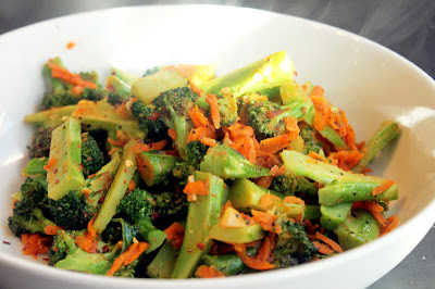 Remove lid from broccoli, add chili oil mixture, stir and mix well.