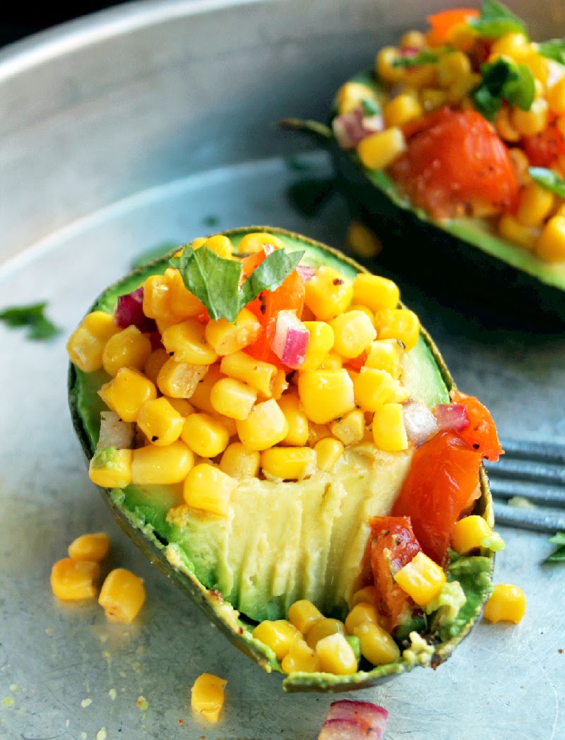 Roasted Corn and Tomato Stuffed Avocados