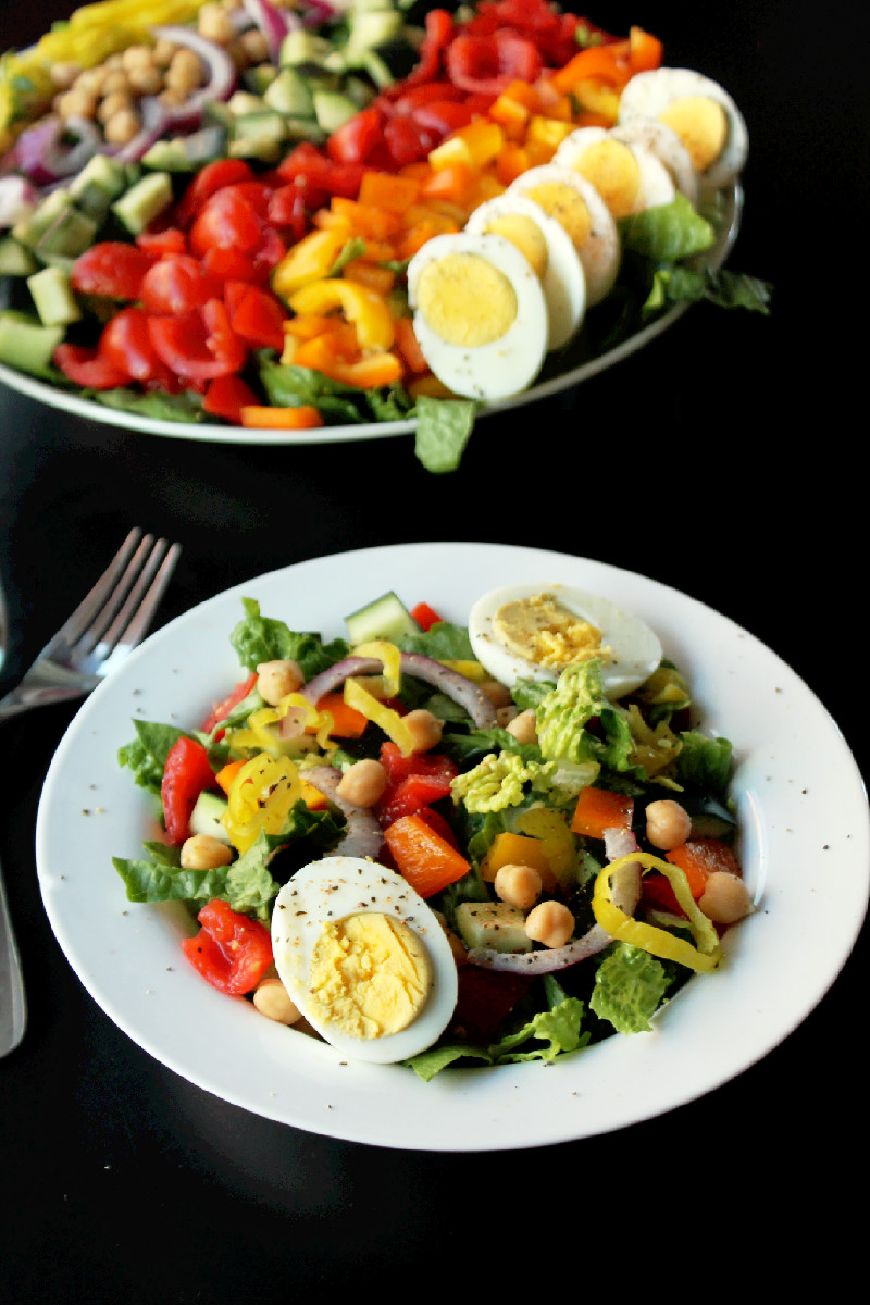 I love a chopped salad made with loads of veggies and romaine lettuce. I will admit I can eat this whole salad by myself and in the past, I have.