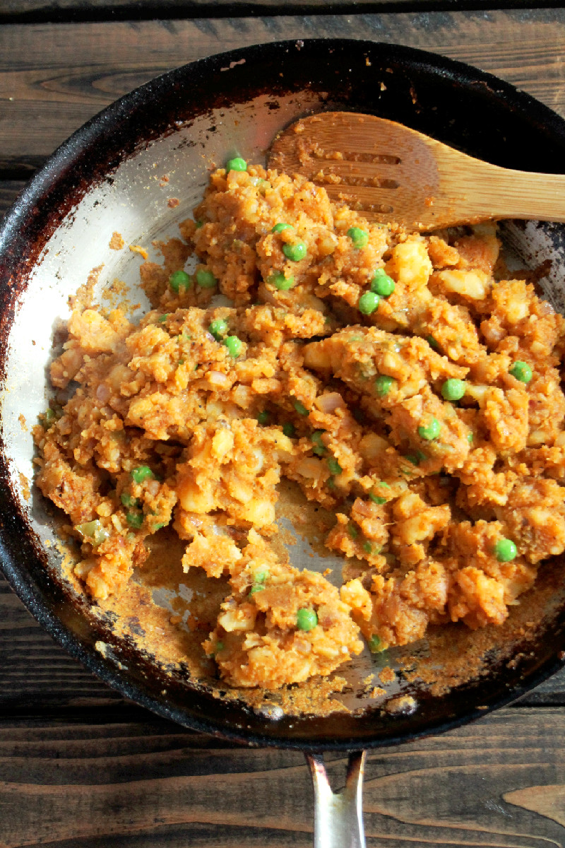 Tender potatoes, crisp peas and full of spice! This is a must make people.