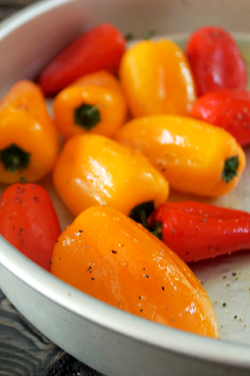 I love to use baby peppers because they taste so delicious once you roast them with a little olive oil, pepper, and salt.